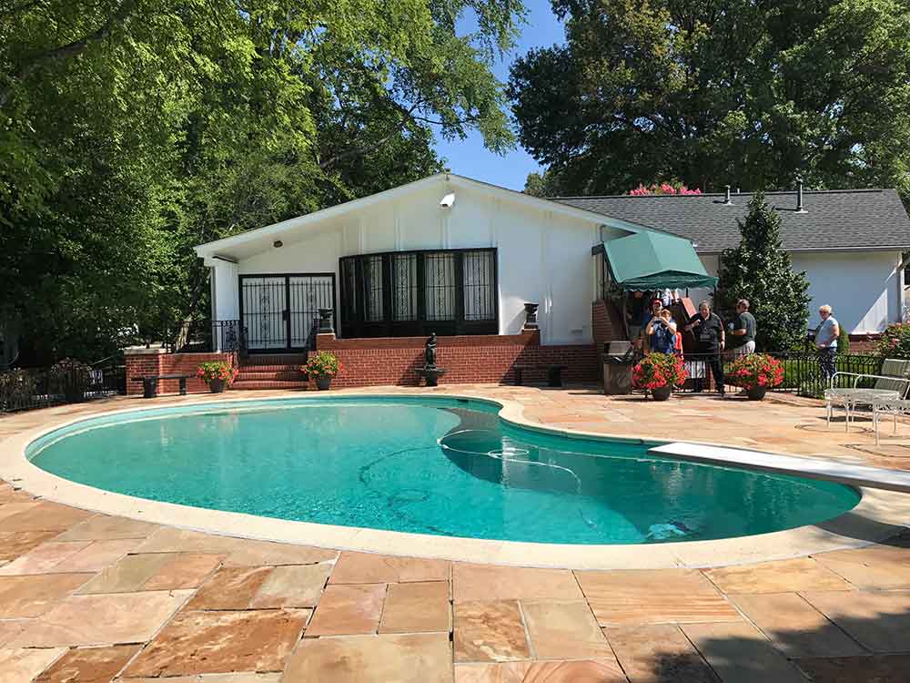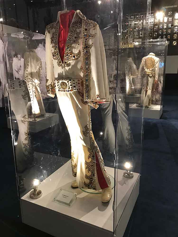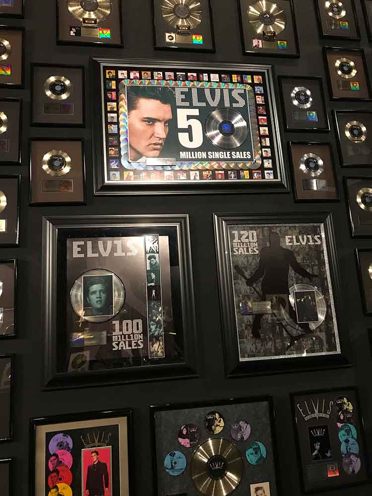 Every time I have visited, there have been changes in either the number of rooms open to the public or the way Elvis’s jumpsuits and memorabilia were displayed. I remember the first time I visited, the kitchen and the downstairs bedroom used by his parents were not part of the tour. On a later visit, costumes and gold records were in the racquetball building.