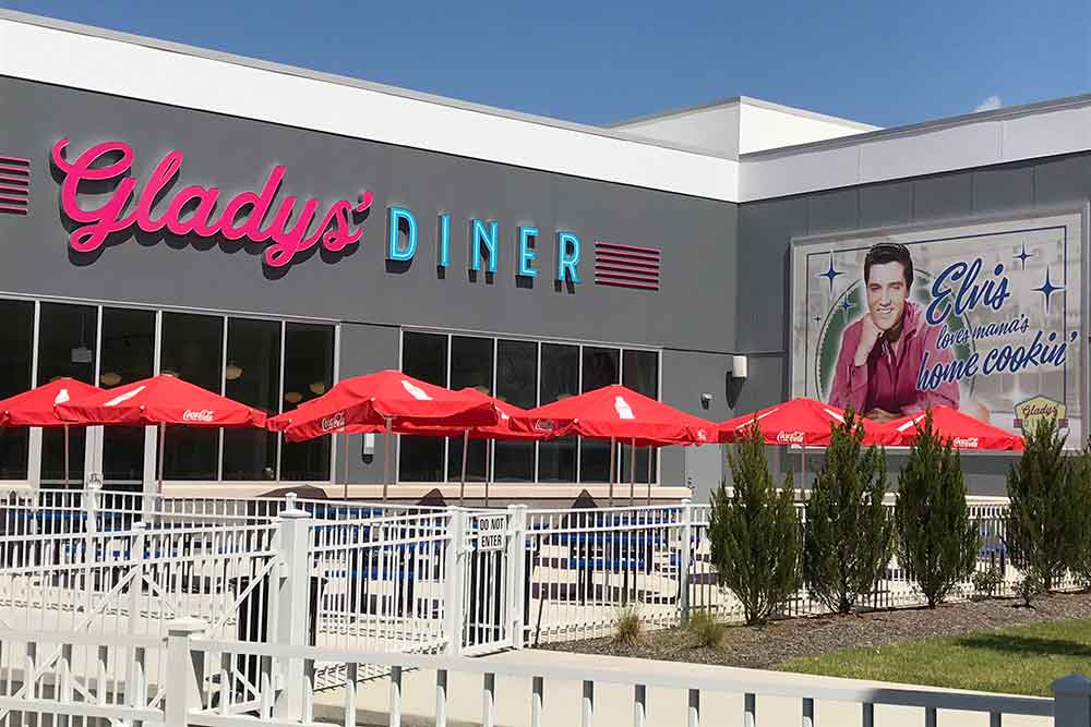We stopped in to Gladys’ Diner for lunch — the cheeseburgers and fries were great — and if that doesn’t appeal, you can order up one of Elvis’ favorites, a peanut butter and banana sandwich. Other eateries include Vernon’s Smokehouse, a full service restaurant specializing in barbeque and down home Southern cooking, a grab & go coffee shop, and an ice cream shop.